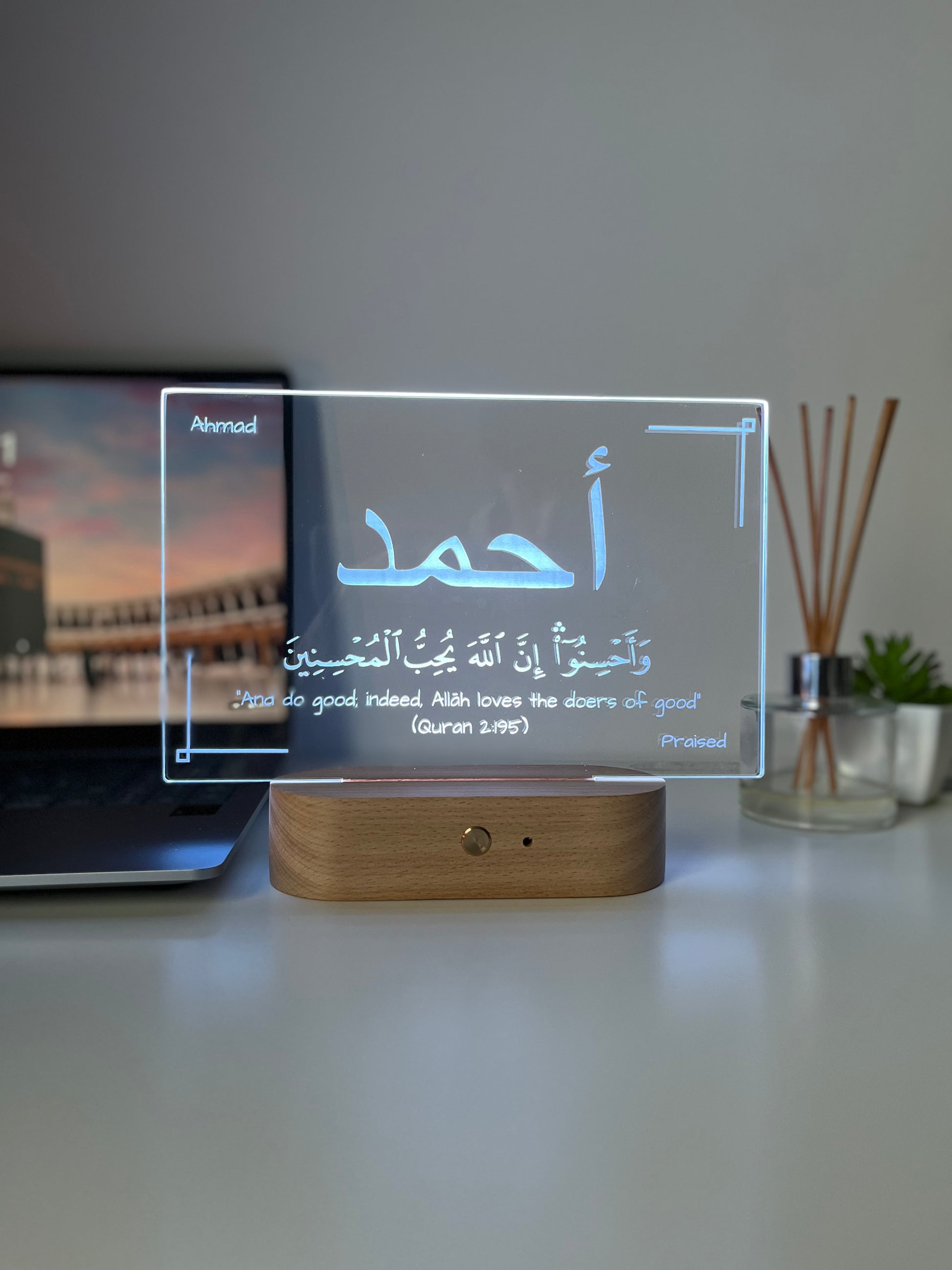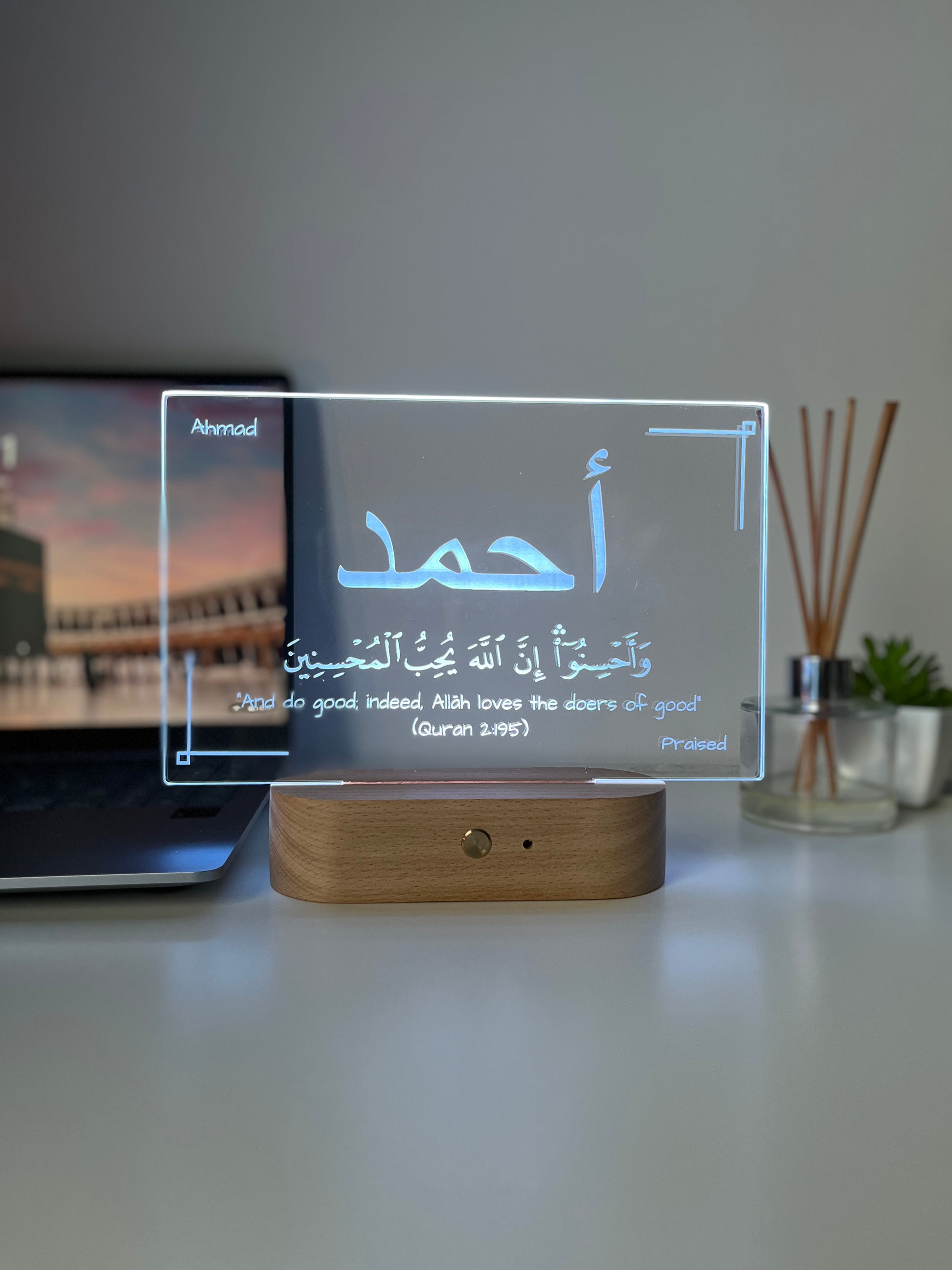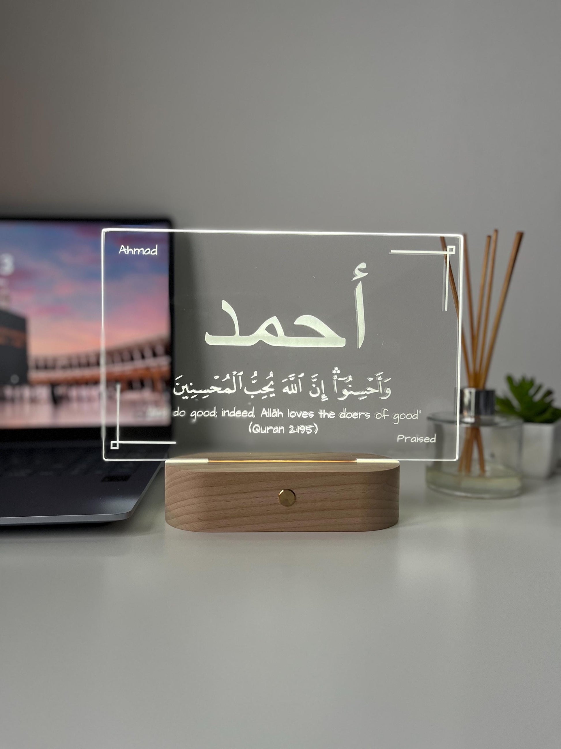 Custom Qur’an Verse LED Lamp | Arabic Engraved Name & Ayah | Personalised Islamic Home Decor